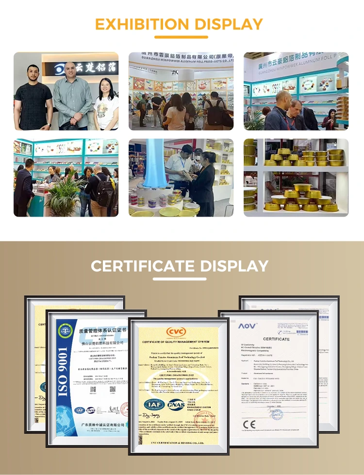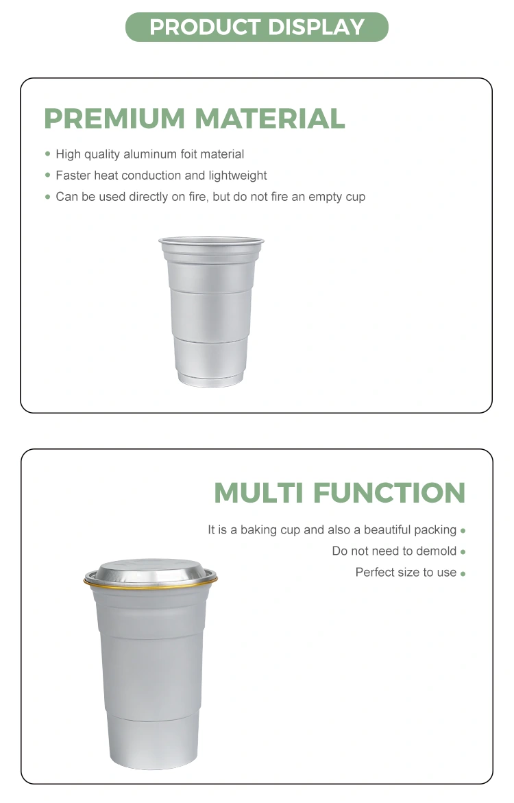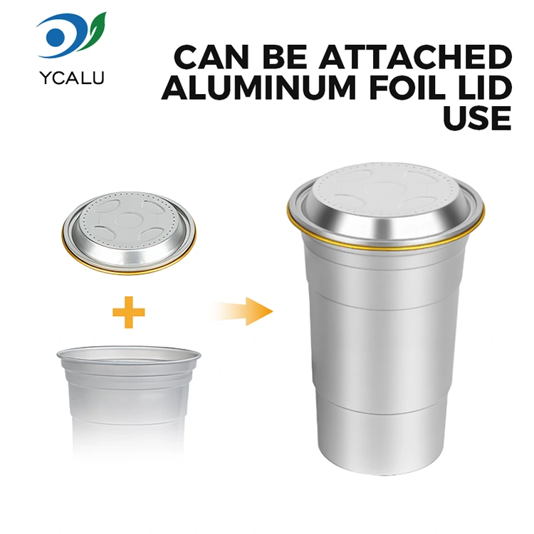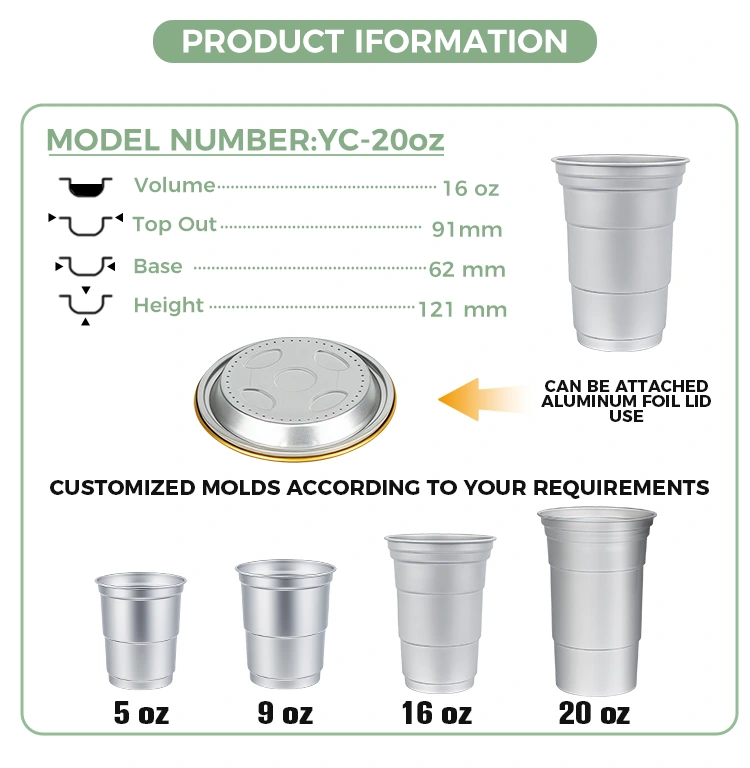Yunchu เป็นผู้ผลิตถ้วยเครื่องดื่มอลูมิเนียมฟอยล์แบบกำหนดเองแบบใช้แล้วทิ้งขนาด 16 ออนซ์ชั้นนำของจีน ถ้วยดื่มอลูมิเนียมฟอยล์แบบกำหนดเองแบบใช้แล้วทิ้งขนาด 16 ออนซ์นี้เป็นถ้วยอลูมิเนียมฟอยล์ขนาด 460 มล. เหมาะสำหรับเครื่องดื่มมาตรฐานเช่นกาแฟและเบียร์ มีการออกแบบที่ได้มาตรฐานและมุ่งเป้าไปที่ผู้ใช้เชิงพาณิชย์เป็นหลัก เช่น ร้านกาแฟและบาร์คราฟต์ที่มีความต้องการปรับแต่งบ่อยครั้ง ในขณะที่ให้การนำความร้อนที่มีประสิทธิภาพและประสิทธิภาพการปิดผนึกขั้นพื้นฐาน ถ้วยเครื่องดื่มอลูมิเนียมฟอยล์รีไซเคิลแบบกำหนดเองแบบใช้แล้วทิ้งขนาด 16 ออนซ์นี้ยังให้ความสำคัญกับบริการปรับแต่งภาพลักษณ์ของแบรนด์อย่างรวดเร็วและยืดหยุ่น