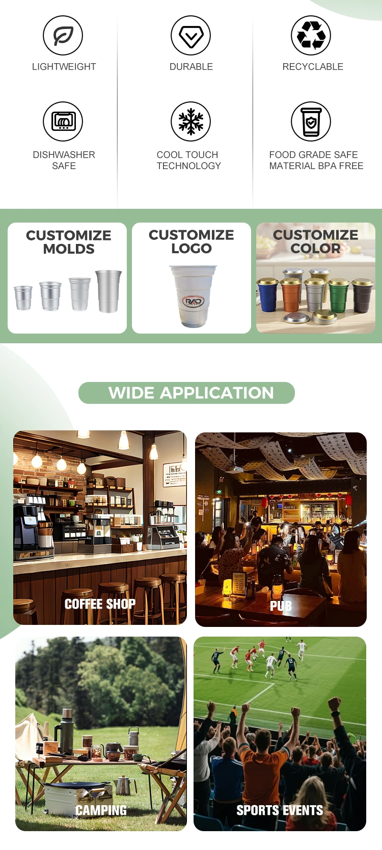โลโก้แบรนด์ (โลโก้) ลวดลายหรือข้อความสามารถปรับแต่งบนตัวถ้วยได้
