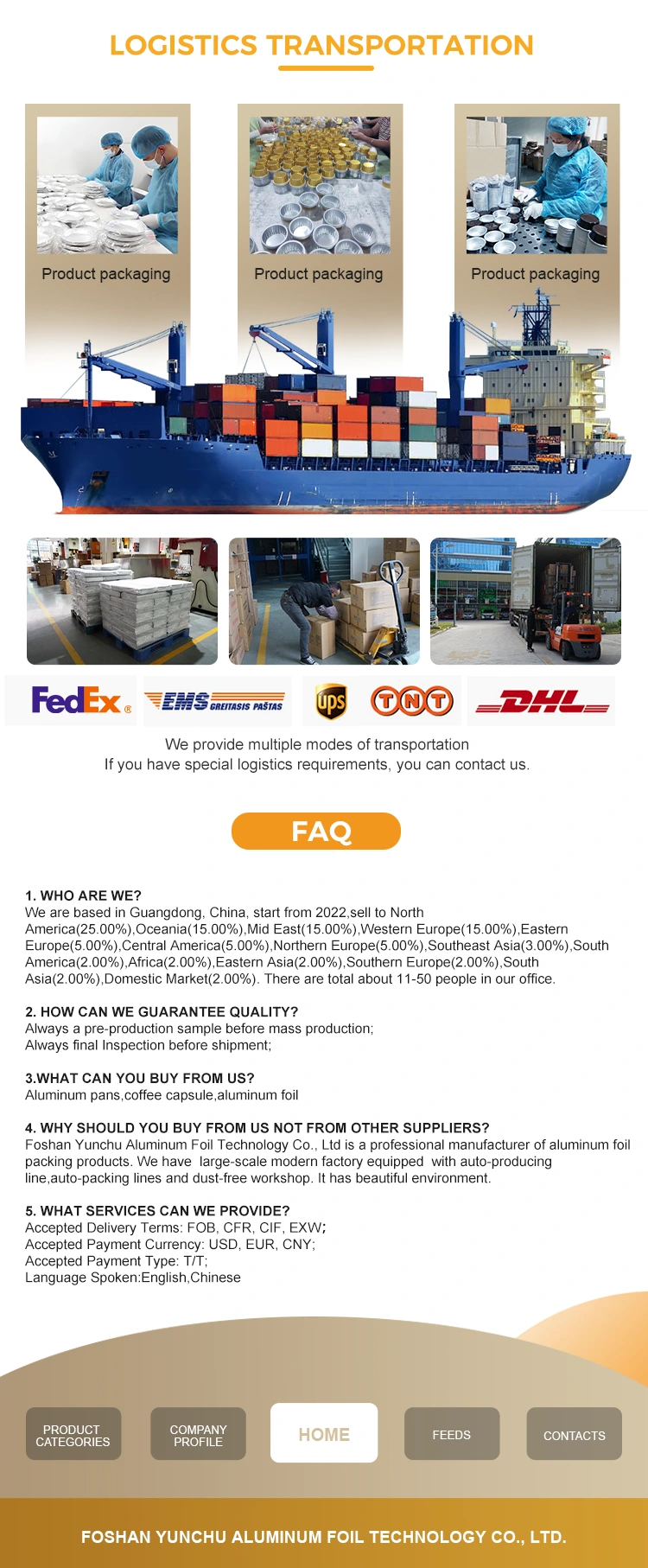 ตั้งแต่การดำเนินงานเชิงพาณิชย์ไปจนถึงการพักผ่อนประจำวัน ตั้งแต่กิจกรรมขนาดใหญ่ไปจนถึงฉากครอบครัว Yunchu อลูมิเนียมฟอยล์ 5oz เครื่องดื่มเย็นรีไซเคิลแบบใช้แล้วทิ้ง ถ้วยเครื่องดื่มอลูมิเนียมตอบสนองความต้องการหลักของฉากที่แตกต่างกันด้วยความปลอดภัย คุณภาพ คุณลักษณะการปกป้องสิ่งแวดล้อม และการปรับตัวที่หลากหลาย บริษัท Foshan Yunchu Aluminium Foil Technology Co., Ltd. ยึดมั่นในแนวคิด "ความเคารพ ความสามัคคี และความก้าวหน้า" มาโดยตลอด และใช้ผลิตภัณฑ์บรรจุภัณฑ์ฟอยล์อลูมิเนียมคุณภาพสูงเป็นตัวพาในการถ่ายทอดแนวคิดเรื่องชีวิตที่ยั่งยืน ผลิตภัณฑ์ของบริษัทถูกส่งออกไปยังยุโรป สหรัฐอเมริกา เอเชียตะวันออกเฉียงใต้ และภูมิภาคอื่นๆ และได้รับความไว้วางใจจากลูกค้าทั่วโลก การเลือกถ้วยดื่มอลูมิเนียมฟอยล์ขนาด 5 ออนซ์ของ Yunchu หมายถึงการเลือกคุณภาพ การปกป้องสิ่งแวดล้อม และความเป็นมืออาชีพ ทำให้เครื่องดื่มทุกชนิดกลายเป็นแนวทางปฏิบัติแห่งชีวิตสีเขียว
