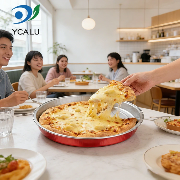 • กระทะพิซซ่าแบบใช้แล้วทิ้งบรรจุภาชนะอลูมิเนียมฟอยล์กลมกระทะพิซซ่าแบบใช้แล้วทิ้งบรรจุภาชนะอลูมิเนียมฟอยล์กลม