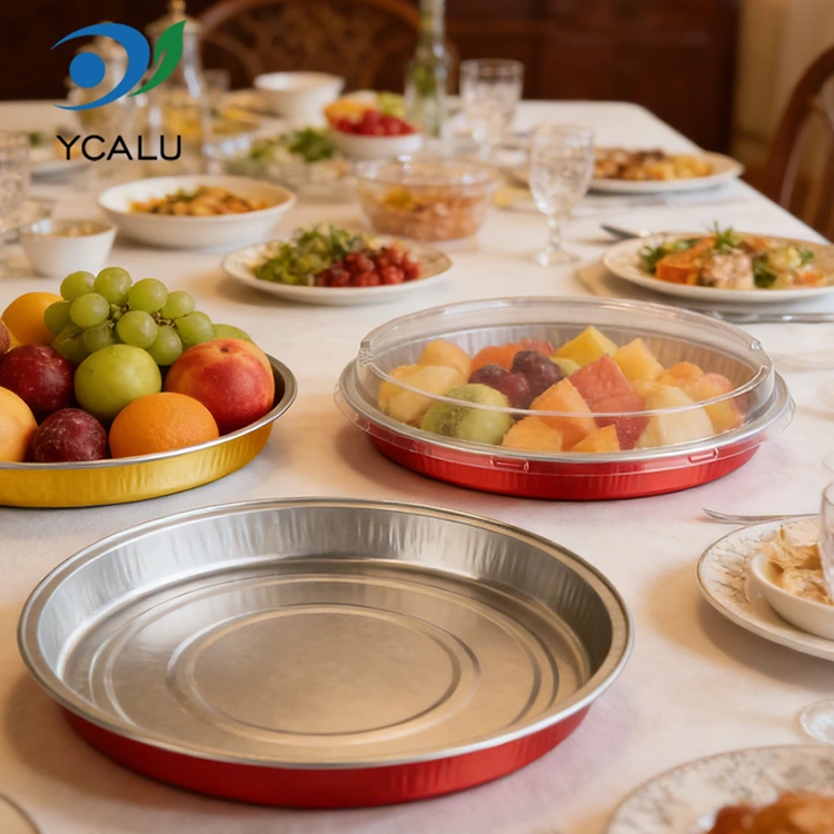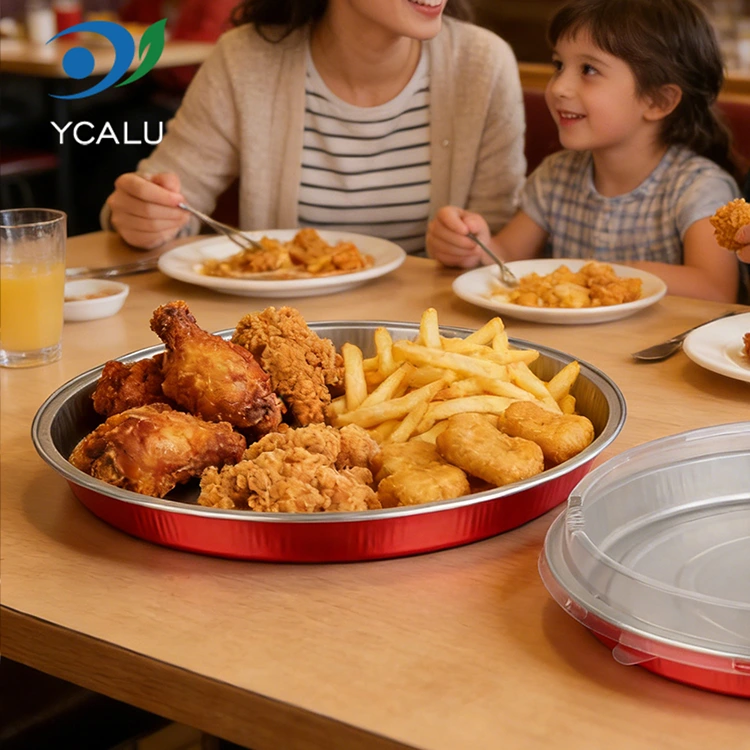 กระทะพิซซ่าแบบใช้แล้วทิ้งบรรจุภาชนะอลูมิเนียมฟอยล์กลม