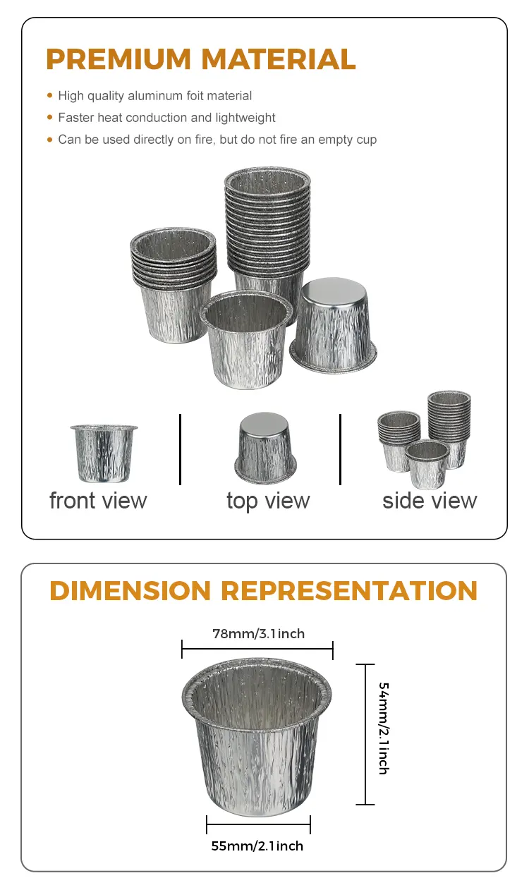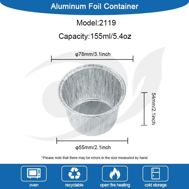 ถ้วยเค้กทรงกลมแบบใช้แล้วทิ้งของผู้ผลิต Yunchu อลูมิเนียมฟอยล์ภาชนะอลูมิเนียมฟอยล์สีเงินได้รับการออกแบบมาให้ใช้แล้วทิ้งและทิ้งซึ่งช่วยขจัดปัญหาในการทำความสะอาดแม่พิมพ์อย่างสมบูรณ์ ไม่ว่าจะเป็นการทำความสะอาดและตกแต่งหลังการอบขนมที่บ้าน หรือการหมุนเวียนอาหารเชิงพาณิชย์อย่างมีประสิทธิภาพ ก็สามารถประหยัดเวลาและต้นทุนได้อย่างมาก เหมาะอย่างยิ่งสำหรับงานปาร์ตี้ งานแต่งงาน การรวมตัวน้ำชายามบ่าย และฉากอื่นๆ เพื่อหลีกเลี่ยงอันตรายด้านสุขอนามัยจากการใช้แม่พิมพ์ร่วมกับผู้คนจำนวนมาก โดยคำนึงถึงความสะดวกและสุขอนามัย ในขณะเดียวกัน วัสดุอลูมิเนียมฟอยล์ก็สามารถรีไซเคิลได้ สอดคล้องกับแนวคิดการรักษาสิ่งแวดล้อม และปกป้องสิ่งแวดล้อมในขณะที่ยังใช้งานได้สะดวก