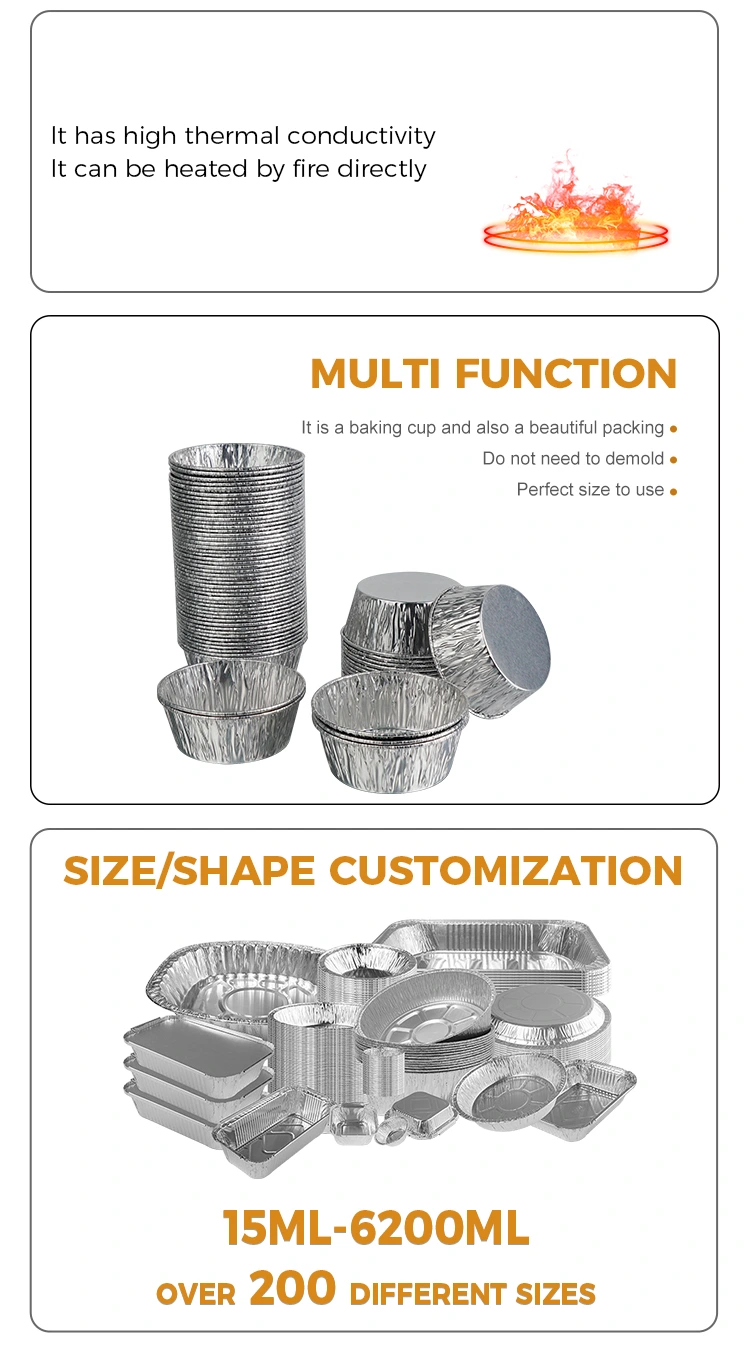 Yunchu อลูมิเนียมฟอยล์ผู้ผลิตเครื่องทอดอากาศซอสกลมแบบใช้แล้วทิ้งภาชนะอลูมิเนียมฟอยล์สีเงิน อลูมิเนียมฟอยล์สีเงินมีพื้นผิวหนาและไม่เสียหายหรือเสียรูปง่าย แม้ว่าจะมีซอสเข้มข้นและส่วนผสมที่เป็นซุป ก็สามารถยึดไว้ได้อย่างมั่นคงโดยไม่รั่วซึมหรือยุบตัว ขอบได้รับการเสริมแรงและกดทับ ทำให้สัมผัสได้เรียบลื่น ไม่ทำให้มือเป็นรอย และจับได้มั่นคงยิ่งขึ้น การออกแบบแบบใช้แล้วทิ้ง ทิ้งหลังการใช้งาน ช่วยให้คุณหมดปัญหาในการทำความสะอาดภาชนะ ไม่เพียงแต่ปรับปรุงประสิทธิภาพเท่านั้น แต่ยังรักษาสภาพแวดล้อมให้สะอาดและเป็นระเบียบเรียบร้อยในสถานการณ์ต่างๆ เช่น บรรจุภัณฑ์แบบซื้อกลับบ้าน ร้านจัดเลี้ยง การตั้งแคมป์ และการปิกนิก นอกจากนี้วัสดุอลูมิเนียมฟอยล์ยังสามารถรีไซเคิลได้ เป็นมิตรกับสิ่งแวดล้อม และเป็นมิตรต่อสิ่งแวดล้อม และจะไม่สร้างภาระต่อสิ่งแวดล้อมมากเกินไปหากทิ้งหลังการใช้งาน โดยคำนึงถึงความสะดวกและรักษาสิ่งแวดล้อม