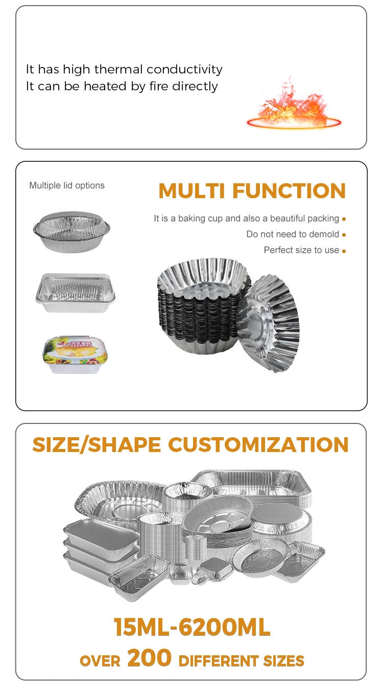 YUNCHU อลูมิเนียมฟอยล์ไข่ทาร์ตขนมปังปิ้งอบอลูมิเนียมฟอยล์อาหารภาชนะบรรจุอาหารอลูมิเนียมฟอยล์ไม่ว่าจะเป็นโฮมเมดหรือผลิตในเชิงพาณิชย์เพื่อตอบสนองความต้องการที่แตกต่างกัน วัสดุที่ปลอดภัยและเป็นมิตรกับสิ่งแวดล้อมและการออกแบบที่หลากหลายทำให้เป็นตัวเลือกที่เหมาะสำหรับผู้ที่ชื่นชอบการอบ