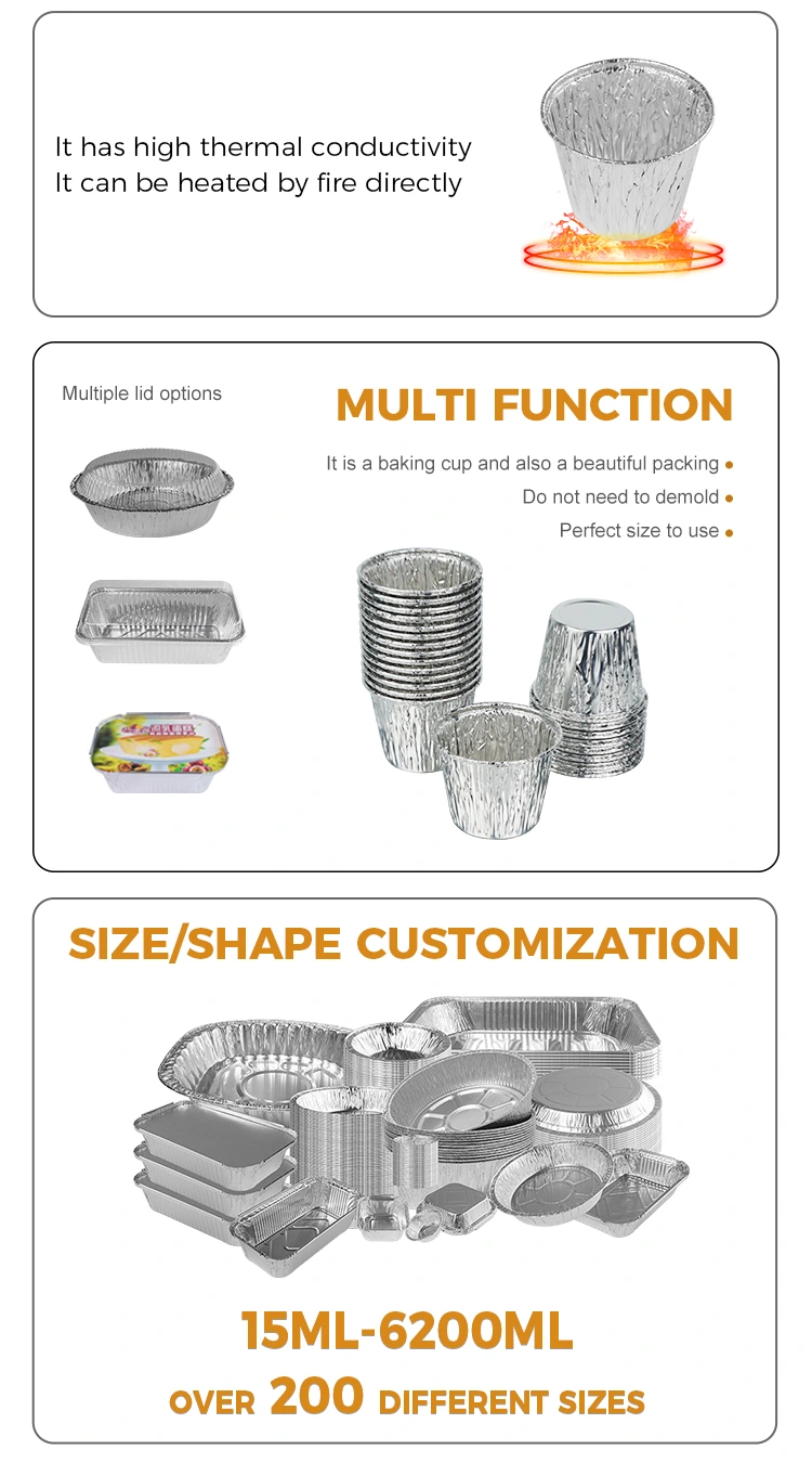 ผู้จัดจำหน่ายอลูมิเนียมฟอยล์ unchu เค้กอบแบบใช้แล้วทิ้งภาชนะอลูมิเนียมฟอยล์สีเงินวัสดุฟอยล์อลูมิเนียมเกรดอาหารวัสดุหนาป้องกันการรั่วและอัดเพื่อให้มั่นใจถึงเสถียรภาพของการผลิตจำนวนมากการนำความร้อนสม่ำเสมอและรวดเร็วลดเวลาในการอบและปรับปรุงประสิทธิภาพการจัดส่งอาหาร การออกแบบการอบและบรรจุภัณฑ์แบบรวมช่วยลดขั้นตอนการถอดแบบและการโหลดแผ่นและลดต้นทุนแรงงาน มีคุณสมบัติหลายประการเหมาะสำหรับการผลิตขนมหวานขนาดเล็กต่างๆและไม่ผิดรูปง่ายในระหว่างการขนส่งซื้อกลับบ้านช่วยเพิ่มชื่อเสียงของแบรนด์