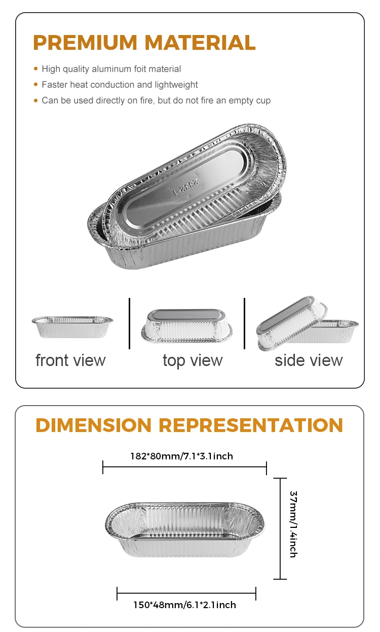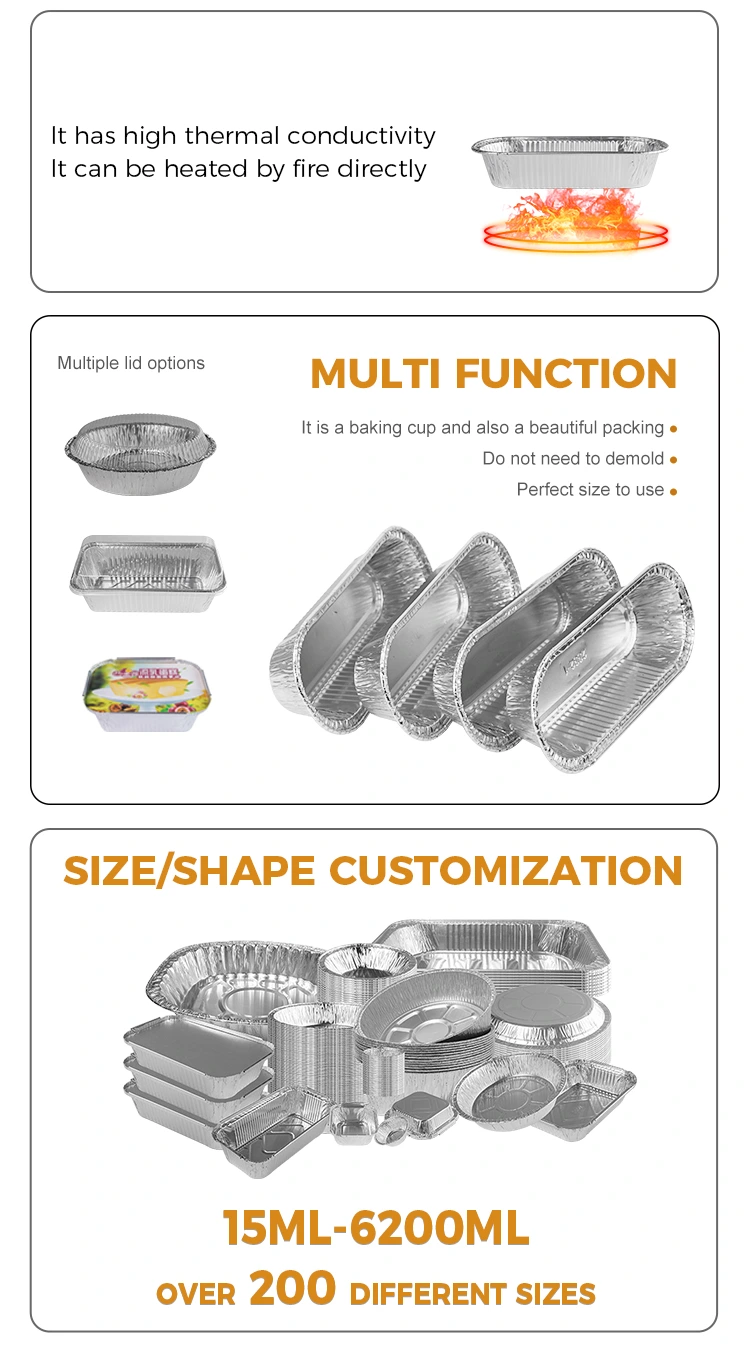 YUNCHU อลูมิเนียมฟอยล์ซัพพลายเออร์ของฟอยล์แอร์แอร์สเตอรีอบตู้คอนเทนเนอร์ฟอยล์สีเงินเหมาะสำหรับสถานที่ต่าง ๆ เช่นการจัดเลี้ยงการทำเครื่องหม้อทอดอากาศที่บ้านการจัดส่งกลับบ้านซอสบุฟเฟ่ต์งานเลี้ยง ฯลฯ นอกจากนี้ยังเหมาะสำหรับการนึ่งไข่ช็อคโกแลตบิสกิตเค้กเล็ก ๆ ไม่ว่าจะใช้เป็นอาหารหรือซอสภาชนะนี้สามารถใช้ในอุตสาหกรรมอาหารและเครื่องดื่มที่หลากหลาย นอกจากนี้ยังสามารถจับคู่กับขนมอบและถ้วยฟอยล์ขนาดเล็กไม่เพียง แต่พกพาง่ายเท่านั้น แต่ยังเพิ่มความงามให้กับจานด้วย ไม่จำเป็นต้องทำความสะอาดหลังการใช้งานและสามารถยกเลิกได้โดยตรงทำให้สะดวกในการใช้งาน