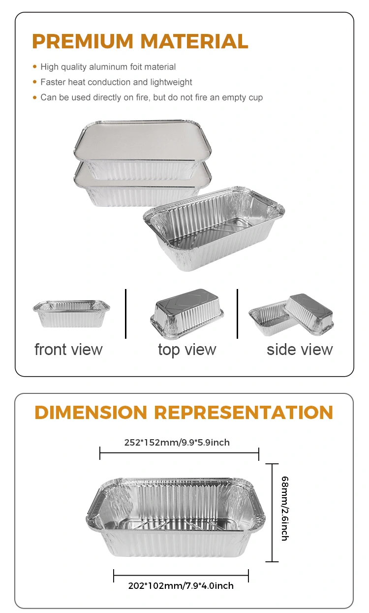 YUNCHU อลูมิเนียมฟอยล์ซัพพลายเออร์ทอดอากาศสี่เหลี่ยมบรรจุตู้คอนเทนเนอร์อลูมิเนียมฟอยล์สีเงินฉนวนกันความร้อนที่ยาวขึ้น, บาร์บีคิวยาวอลูมิเนียมฟอยล์ฟอยล์, วัสดุที่มีสุขอนามัยและสุขภาพสามารถสัมผัสได้โดยตรงอาหารอลูมิเนียมที่มีคุณภาพสูง รองรับอาหารส่วนใหญ่สามารถใช้กับฝาครอบอลูมิเนียมฟอยล์, ฟอยล์อลูมิเนียมด้านหนึ่ง, การ์ดสีขาวด้านหนึ่ง พื้นผิวอลูมิเนียมฟอยล์กันน้ำมันและกันน้ำและด้านอลูมิเนียมฟอยล์หันหน้าไปทางเมื่อใช้ รองรับการสั่งซื้อแบบฟอยล์อลูมิเนียมการสั่งซื้อขายส่งสามารถให้การปรับแต่งการพิมพ์ลวดลาย, MOQ เดียวของ 1,000 ชิ้น/UP, บาร์บีคิวรูปสี่เหลี่ยมผืนผ้านี้มีข้อกำหนดและแบบจำลองที่หลากหลายคุณสามารถติดต่อพนักงานขายเพื่อสอบถาม