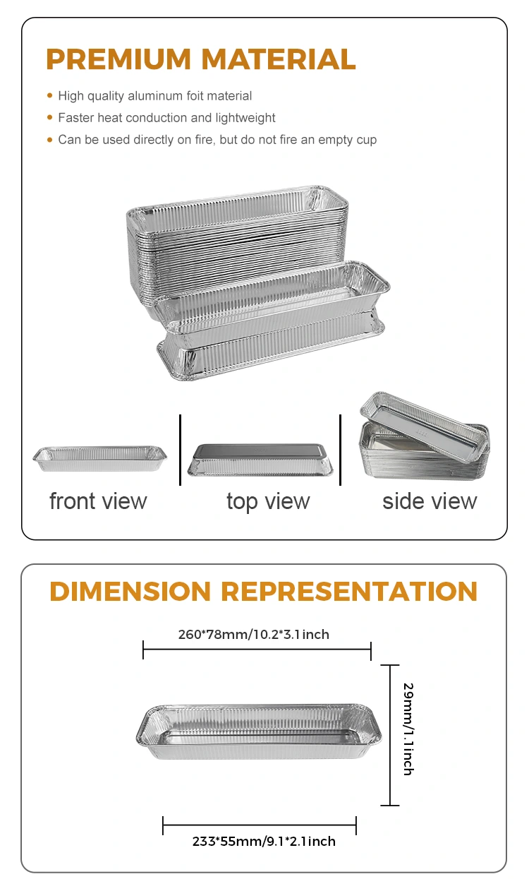 YUNCHU อลูมิเนียมฟอยล์ซัพพลายเออร์ของขนมปังสี่เหลี่ยมผืนผ้าแอร์แอร์เฟรีสีเงินอลูมิเนียมฟอยล์ฟอยล์ที่ใช้เป็นพิเศษสำหรับการอบขนมปังยังสามารถใช้เป็นชามฟอยล์ดีบุกเหมาะสำหรับขนมปังอบขนมปังปิ้งข้าวอบและอาหารอื่น ๆ ภาชนะนี้มีการใช้งานที่หลากหลายวัสดุฟอยล์อลูมิเนียมหนาเกรดอาหารทนทานและไม่ง่ายต่อการแตกวัสดุสัมผัสอาหารสามารถใช้ในเตาอบเตาอบบาร์บีคิวเตาแอร์และอุปกรณ์อื่น ๆ วัสดุเกรดอาหารสามารถทำความสะอาดได้ง่ายสามารถใช้งานได้โดยตรงกับอาหารสามารถทิ้งได้หลังจากใช้งานเพียงครั้งเดียวไม่ใช่เรื่องง่ายที่จะเกรียมด้านล่างการ demolding ง่าย ๆ ส่วนผสมที่มีคุณภาพสูงจะถูกทำให้ร้อนอย่างสม่ำเสมอ รองรับการสั่งซื้อสินค้าขายส่งอลูมิเนียมฟอยล์และสามารถให้บริการปรับแต่งการพิมพ์ลวดลายด้วย MOQ เดียว 1,000 ชิ้น ภาชนะอลูมิเนียมฟอยล์สีเงินบาร์บีคิวสี่เหลี่ยมนี้ให้ข้อมูลจำเพาะและรุ่นที่หลากหลายให้เลือกหากจำเป็นโปรดติดต่อพนักงานขายเพื่อขอคำปรึกษา
