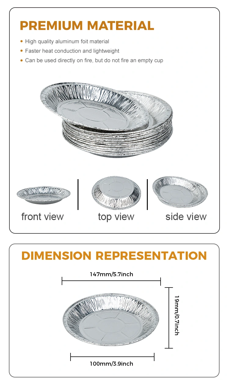 YUNCHU อลูมิเนียมฟอยล์กลมแอร์แอร์สค์อบอลูมิเนียมฟอยล์อาหารภาชนะบรรจุอาหารอลูมิเนียมฟอยล์ซึ่งมีลักษณะของสุขอนามัยและการป้องกันสิ่งแวดล้อมทำจากวัสดุที่มีความหนาและทนต่อการกัดกร่อนไม่ใช่เรื่องง่ายที่จะเปลี่ยนรูปสามารถติดต่ออาหารโดยตรงไม่กลัวอุณหภูมิสูง สามารถทนต่ออุณหภูมิสูงได้สูงถึง 250 ° C ทำให้เหมาะสำหรับวิธีการปรุงอาหารที่หลากหลายเช่นการอบอุณหภูมิสูงเตาอบและบาร์บีคิวโดยไม่ต้องกังวล มีข้อมูลจำเพาะหลายอย่างเพื่อตอบสนองความต้องการการอบที่หลากหลายในขนาดที่แตกต่างกันช่วยให้คุณสามารถรับมือกับข้อกำหนดการผลิตอาหารที่หลากหลายได้อย่างง่ายดาย