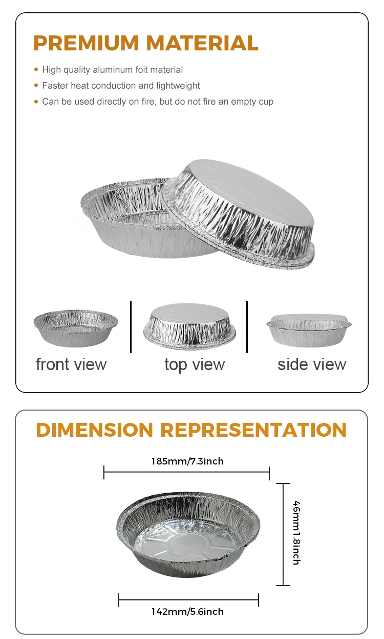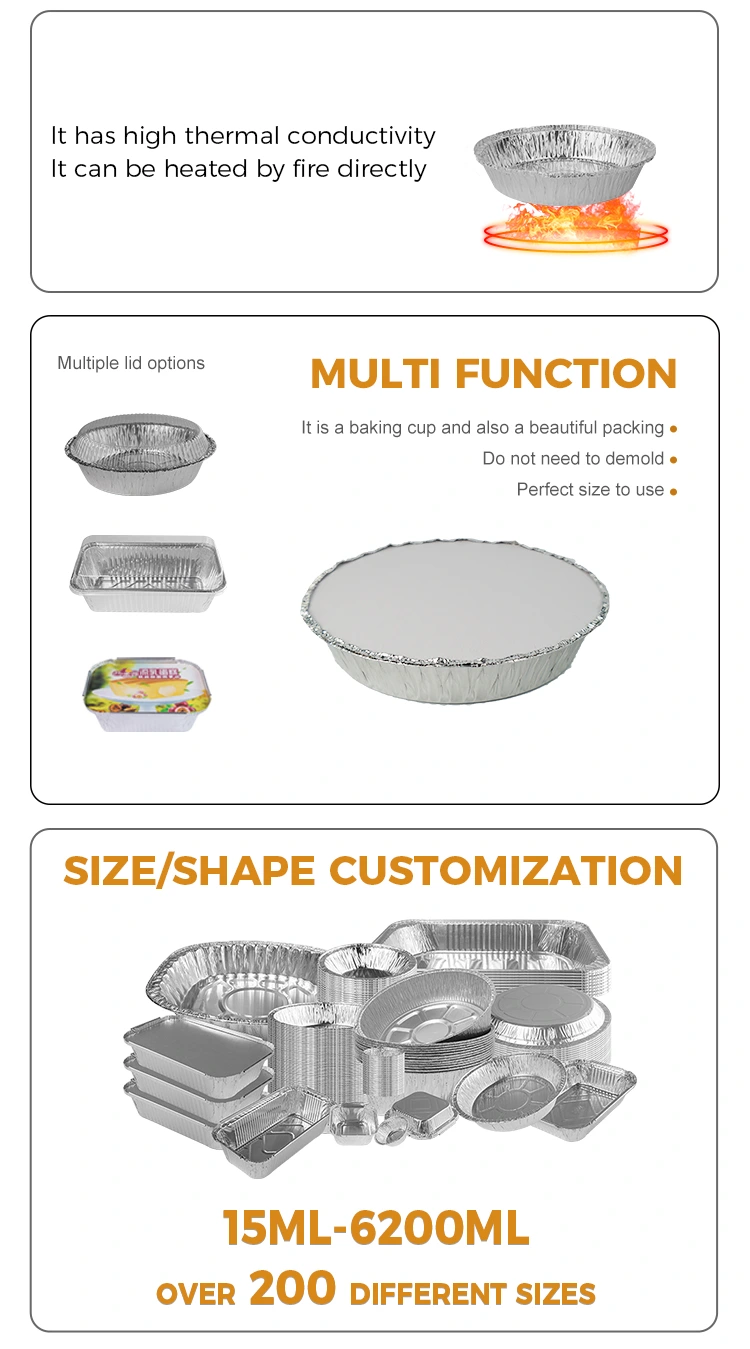 คุณสมบัติ: การขึ้นรูปชิ้นเดียวที่มีความหนาและทนต่อการอบใช้วัสดุฟอยล์อลูมิเนียมเกรดการสัมผัสอาหารได้อย่างมั่นใจในการติดต่ออาหารไม่ง่ายต่อการเสียรูปและไม่รั่วไหลความหนาที่แข็งแรงความต้านทานการกัดกร่อนความต้านทานอุณหภูมิสูง